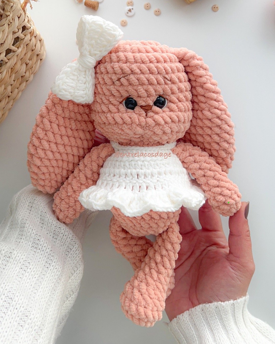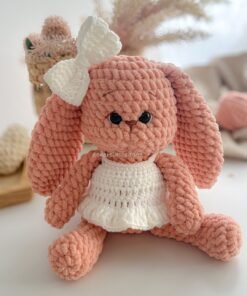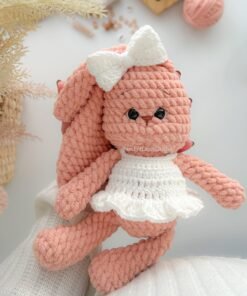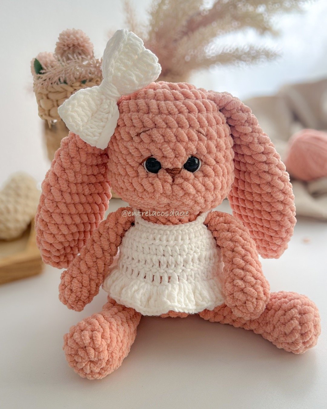 A receita completa em PDF vem com instruções escritas, fotos e vídeos auxiliares para te guiar passo a passo na confecção dessa coelhinha encantadora.
